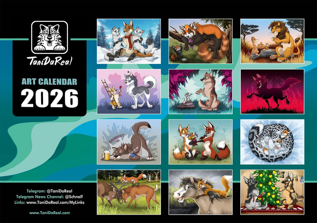 12 months of colorful artwork by the artist TaniDaReal – sweeten the upcoming year with those adorable foxes, wolves, lions, dogs, red pandas, snow leopards, deer, horses and many more!
