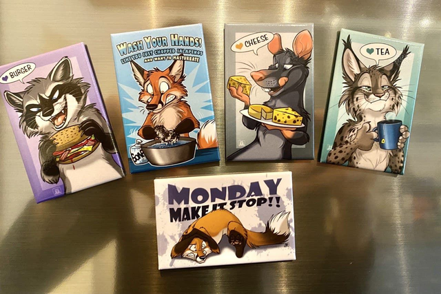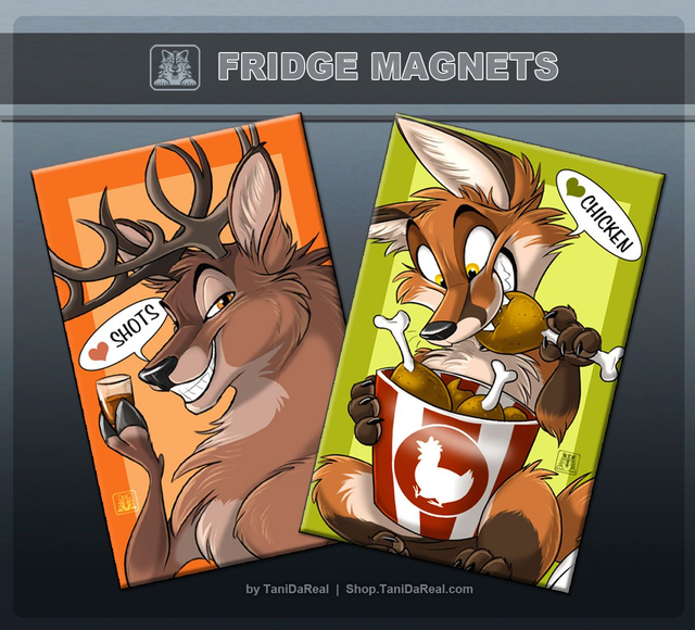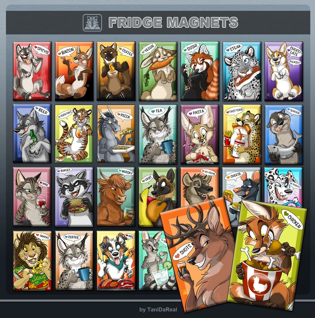 Furry magnets featuring your favorite I ♡ food and drinks! For your fridge or any other magnetic surface. Collect them all!