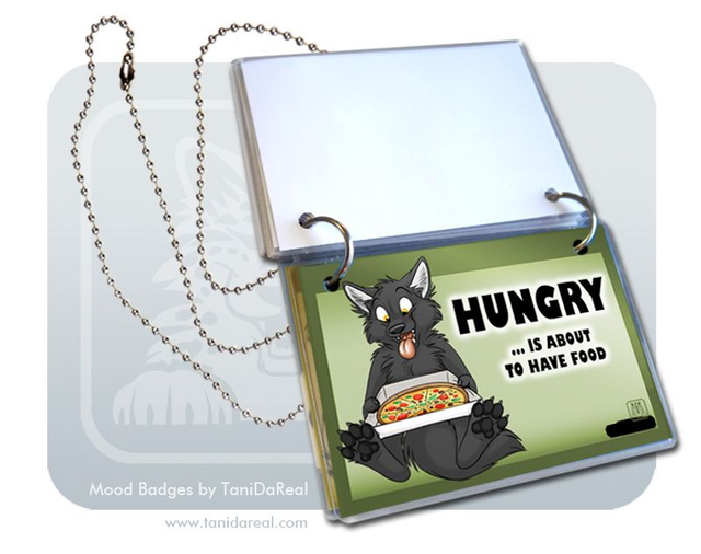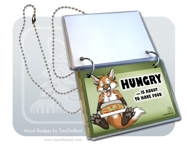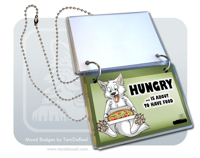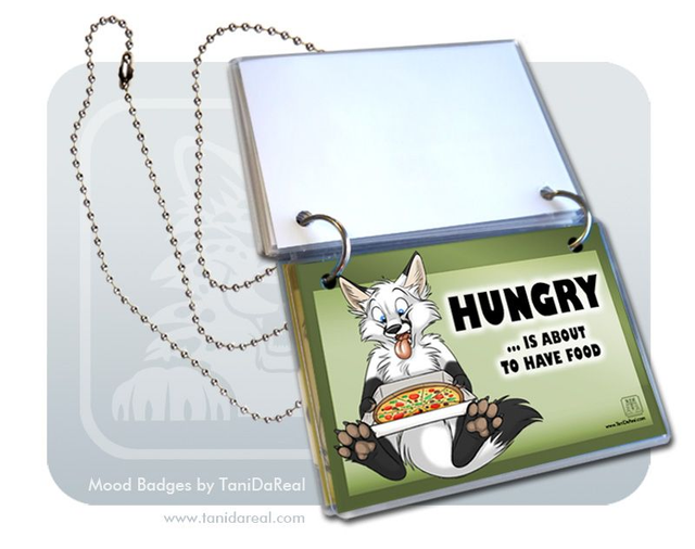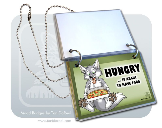My MOOD BADGES are a handmade SET of 5 laminated badges with two rings and a chain/necklace. Wear them around your neck and flip the badges over to show everyone your current mood!