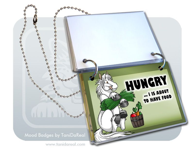 My MOOD BADGES are a handmade SET of 5 laminated badges with two rings and a chain/necklace. Wear them around your neck and flip the badges over to show everyone your current mood!
