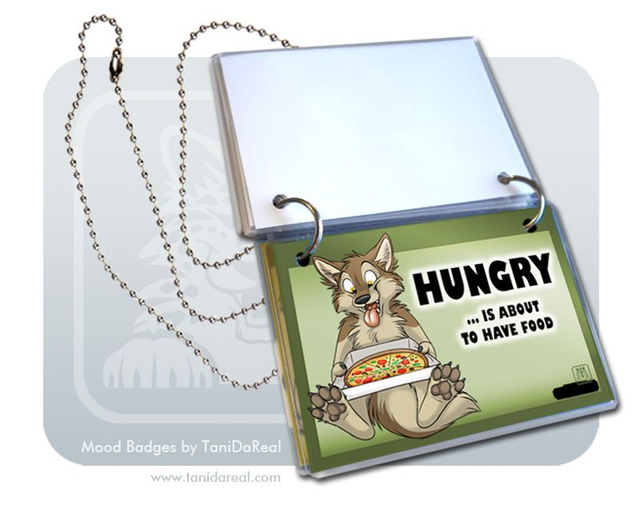 My MOOD BADGES are a handmade SET of 5 laminated badges with two rings and a chain/necklace. Wear them around your neck and flip the badges over to show everyone your current mood!