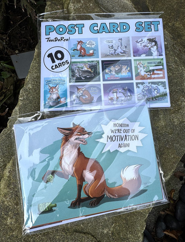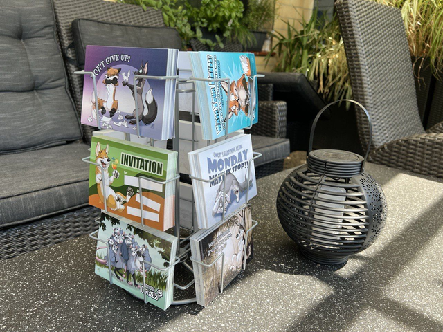 This Post Card Set includes 10 different post cards - double-sided, with colorful artwork on the front and a backside for writing greetings (DIN A6).