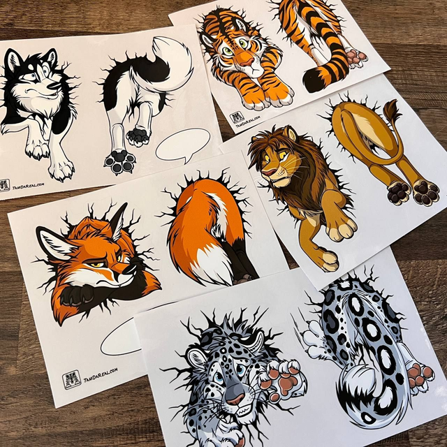 STUCK grumpy Fox Sticker Sheet with 3 contour-cut stickers: Front and back side + empty speech bubble